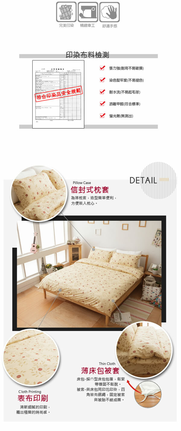 ◆尺寸:雙人薄床包-5×6.2尺(150×186公分)/可包覆床墊厚度:約28公分±5%;信封式枕套-75×45公分;雙人兩用被套-6x7尺(180x210公分)