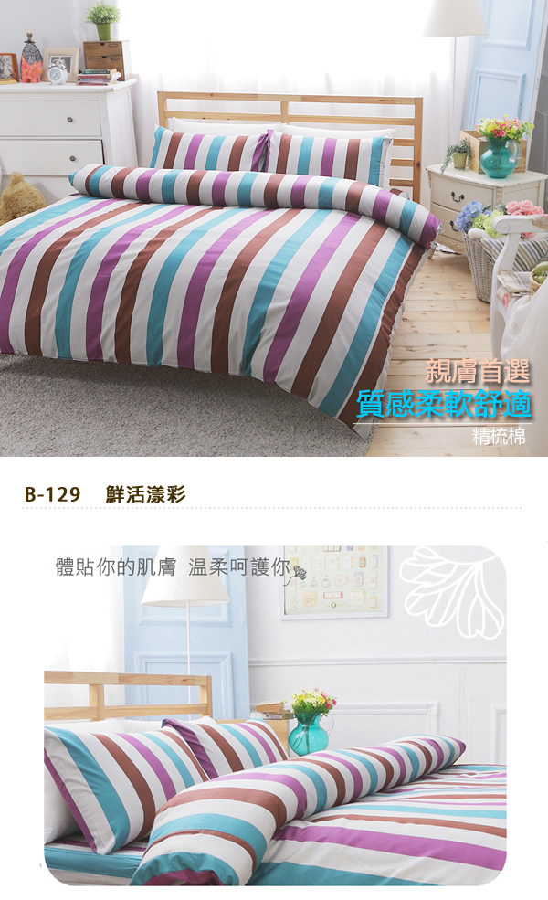 100%精梳純棉/單人三件式床包被套組/台灣製-B129