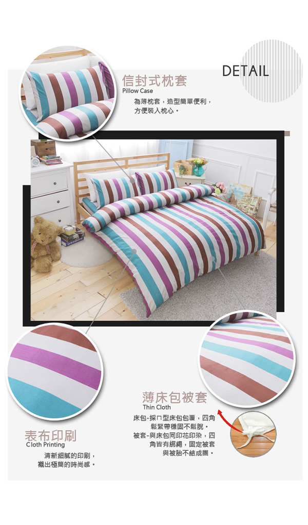 ◆內容件數:單人薄床包x1+信封式枕套x1+單人薄被套x1