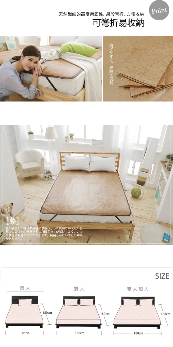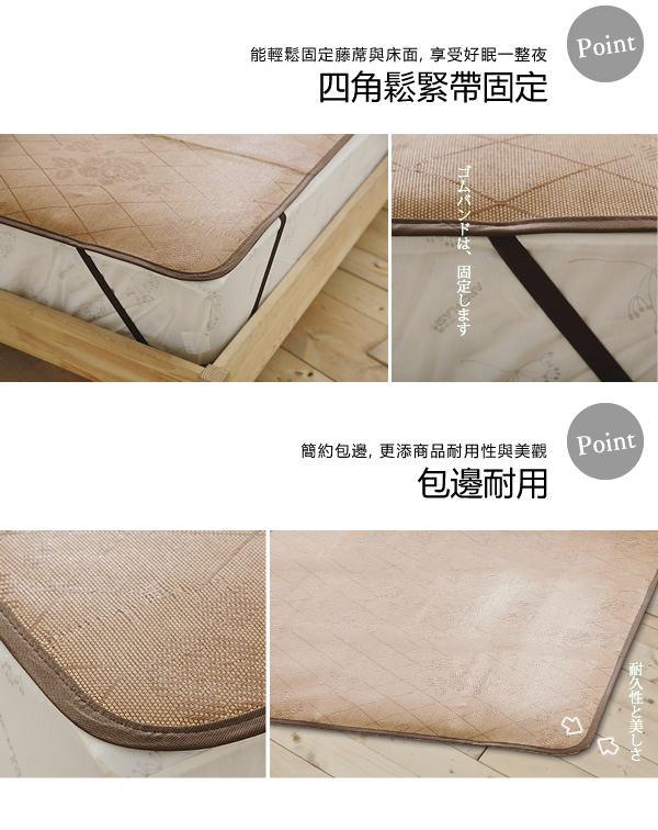 6x6尺雙人加大-平單式御藤涼蓆(附鬆緊帶)