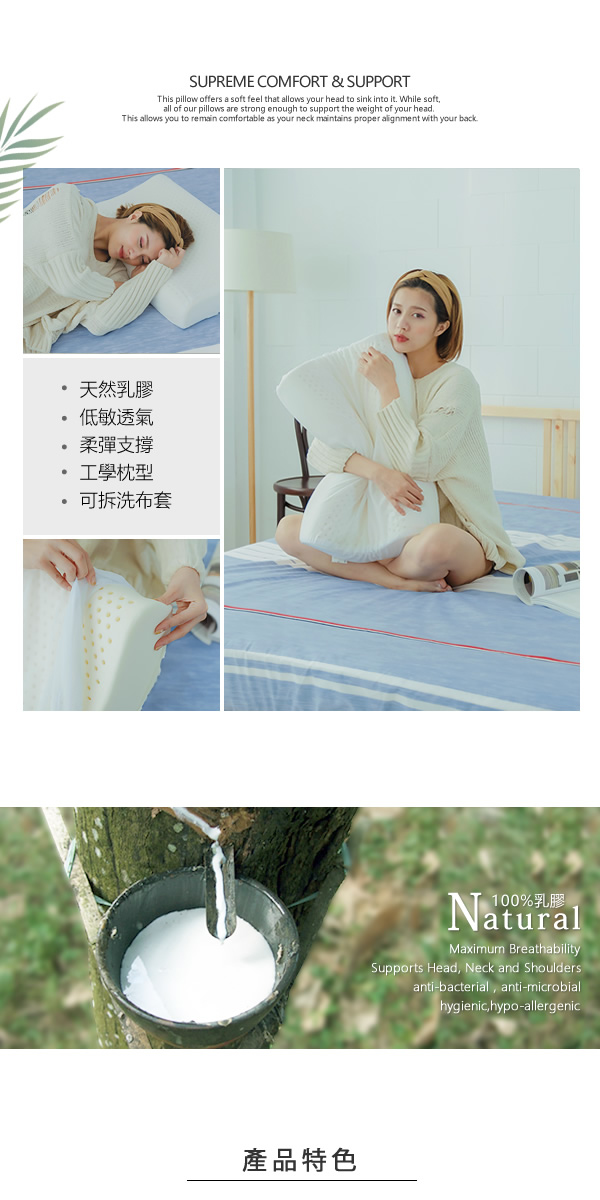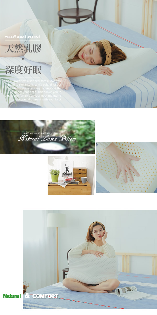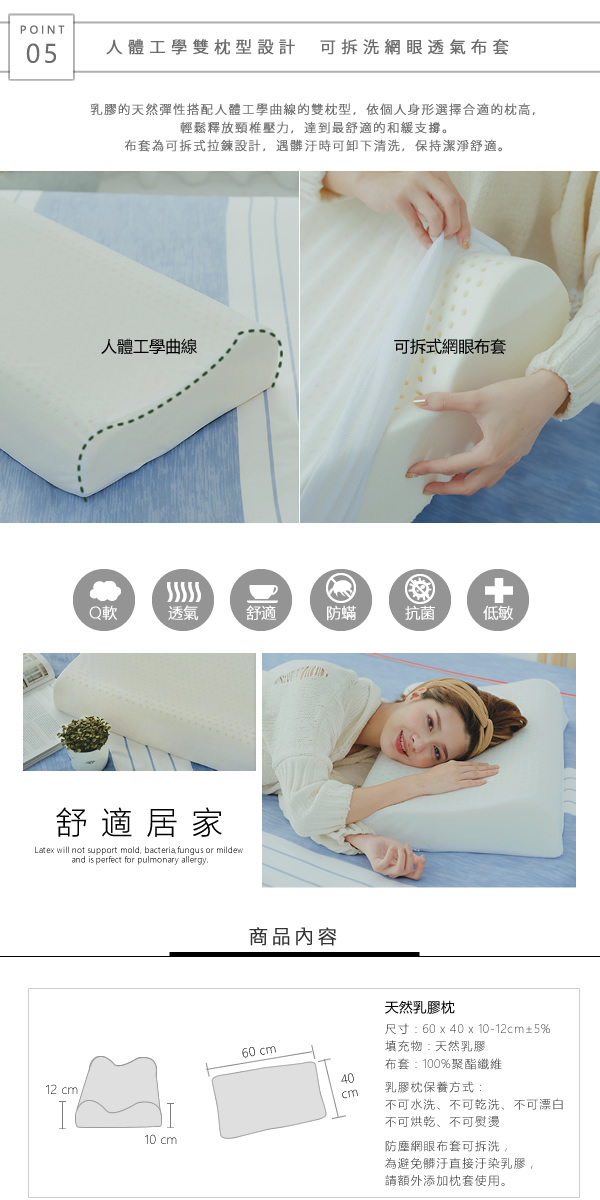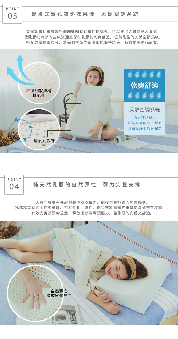 人體工學紓壓天然100%乳膠枕(可拆洗布套)/蜂巢透氣/泰國乳膠