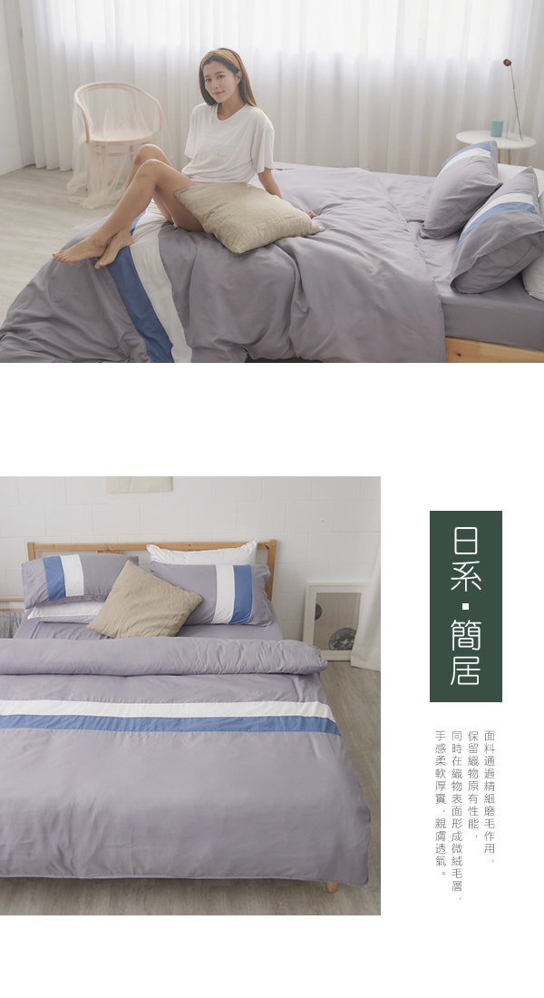 新絲柔簡約拼接文青風/雙人加大床包+枕套+被套四件組/灰