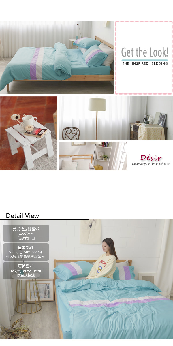 薄被套-6×7尺(180×210公分)±3%;美式薄枕套-72×42公分±3%