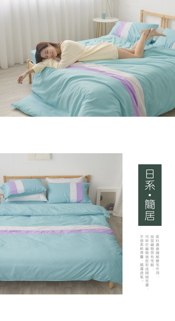 新絲柔簡約拼接文青風/雙人床包+枕套+被套四件組/綠