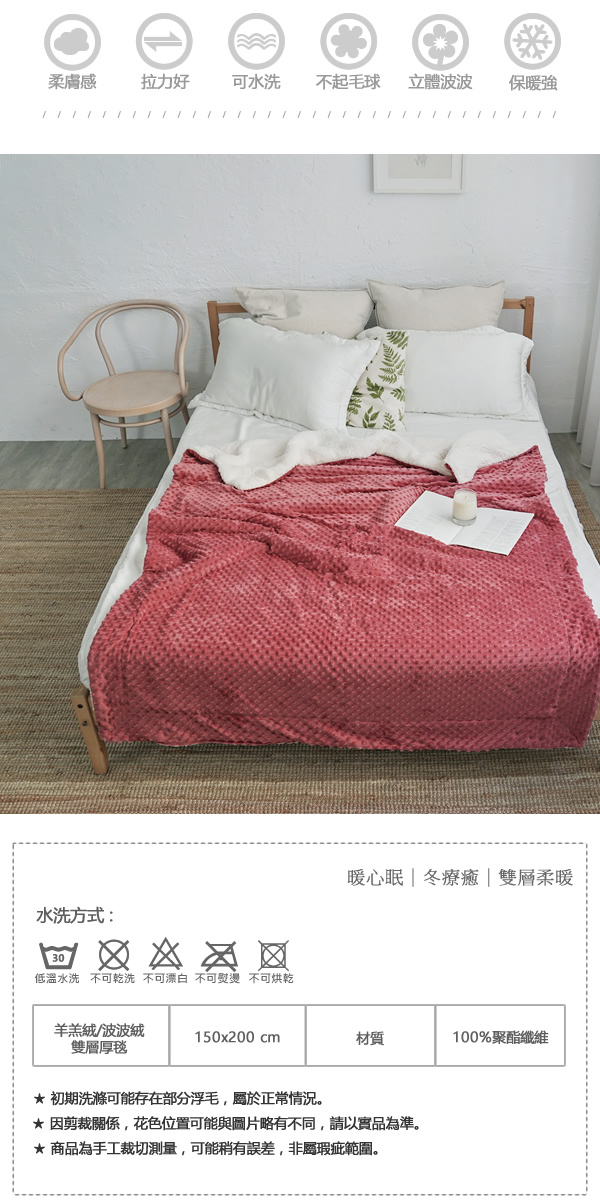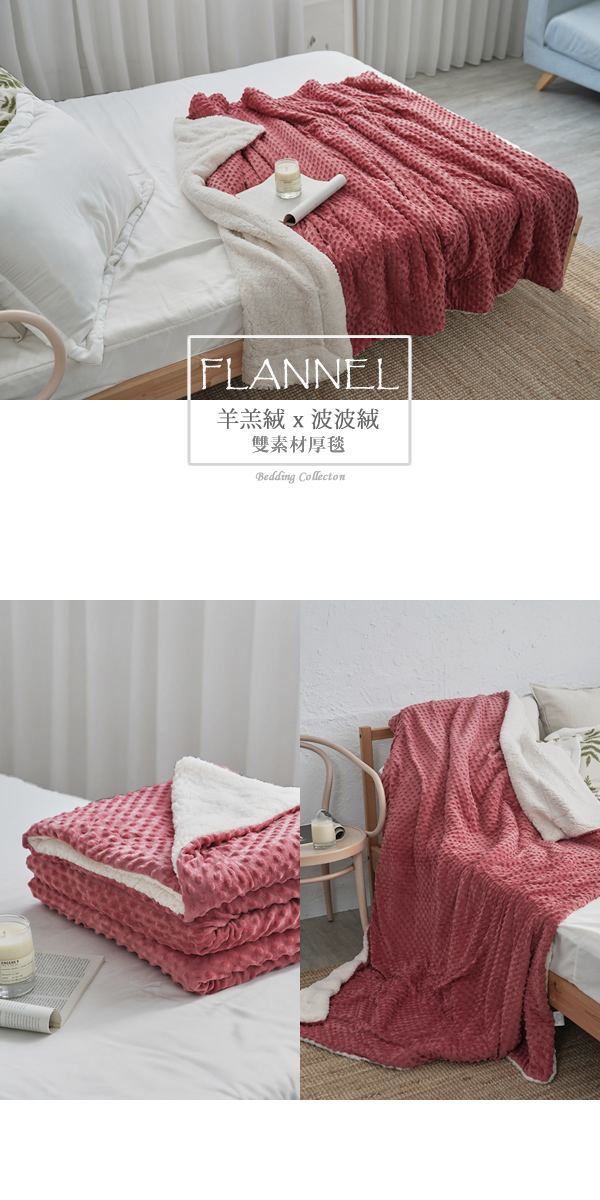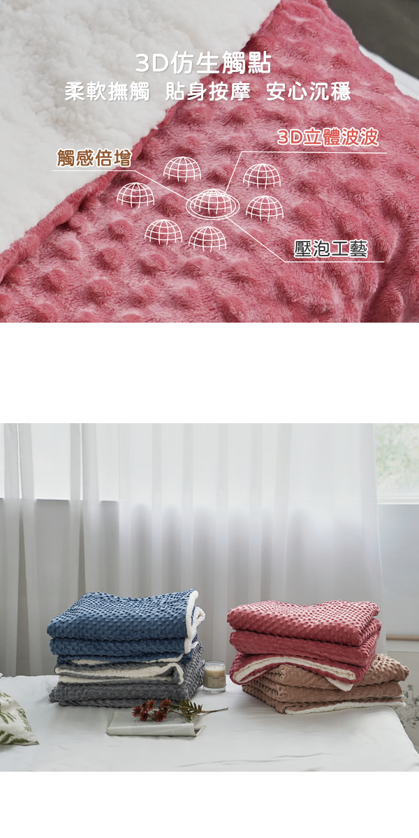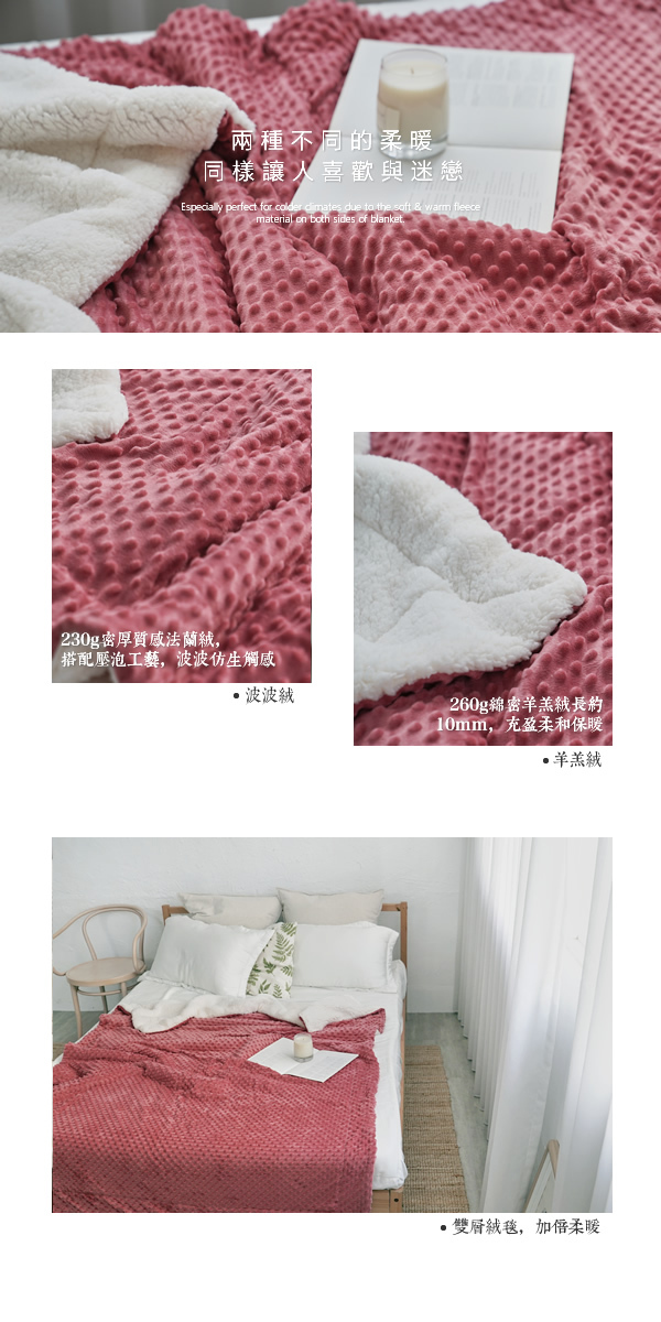 素面純色『煙薰玫瑰』3D立體安眠波波絨x羊羔絨加厚雙面保暖毯150x200cm 秋冬熱銷絨毯(限2件超取)