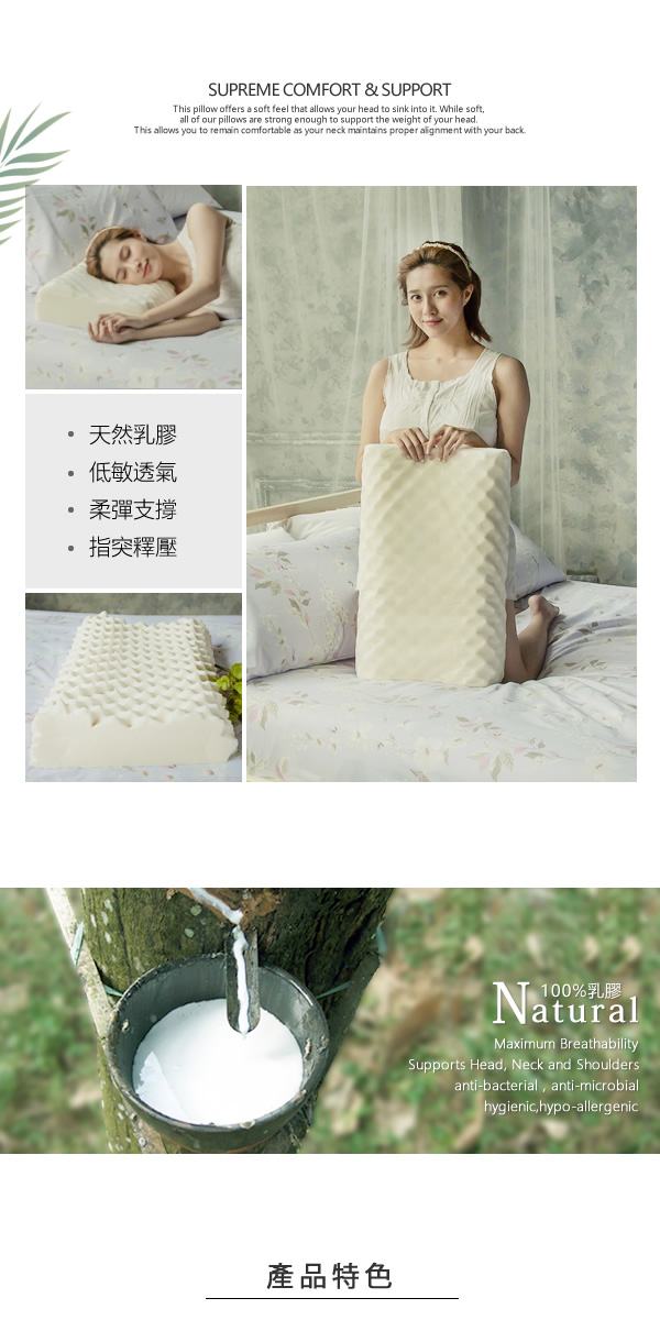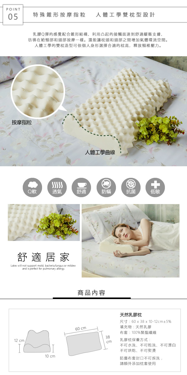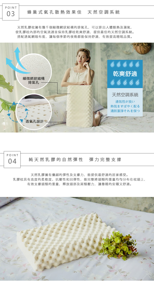 蜂巢透氣按摩溝型天然100%乳膠枕/人體工學/泰國乳膠(2入/組)